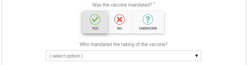 If you select YES the vaccine was mandated, a further question will appear, asking who mandated the vaccine.