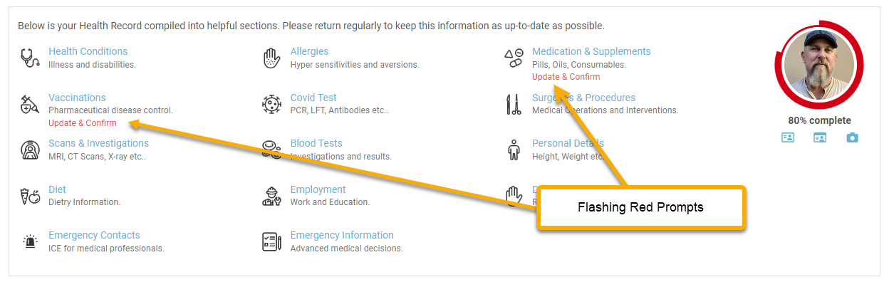 Check to ensure that any new vaccinations you received during the prior month have been added, if not use the "Add" button to add them now.